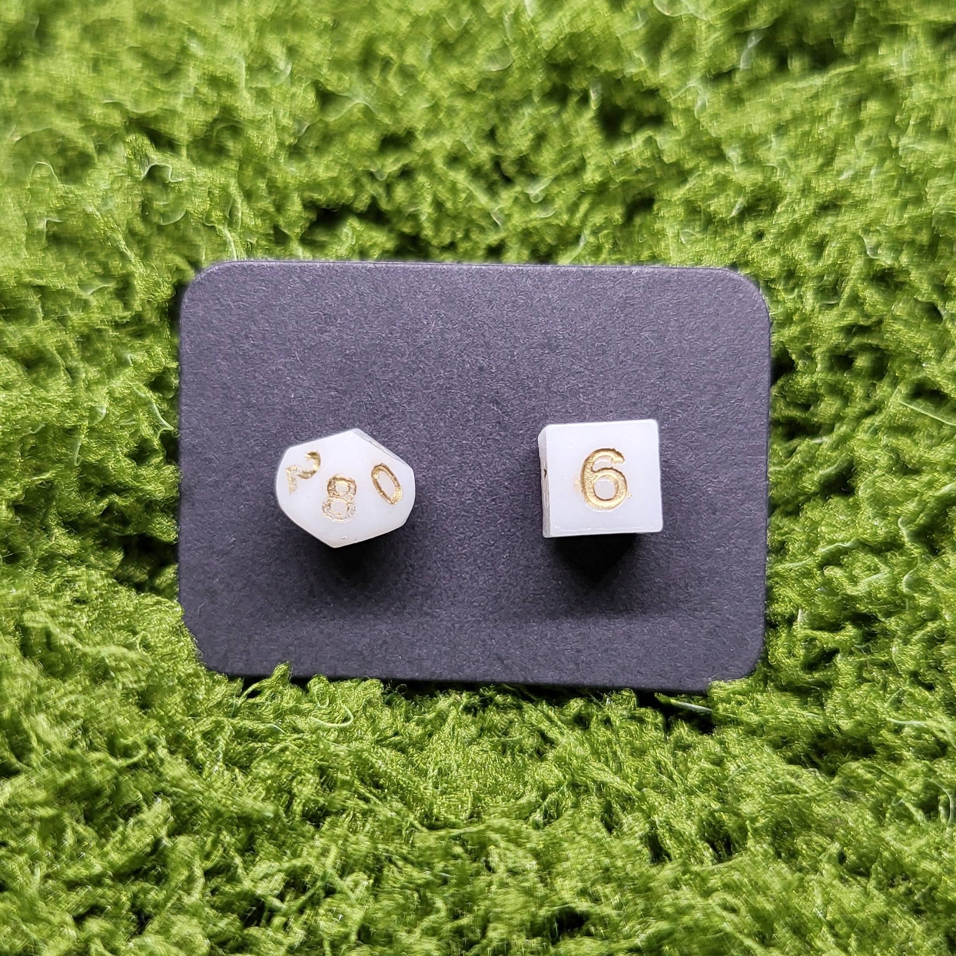 Ručně vyráběné náušnice s kostkami z pryskyřice – originální šperk pro milovníky DnD, RPG her a jedinečných doplňků. Každý pár je unikát!