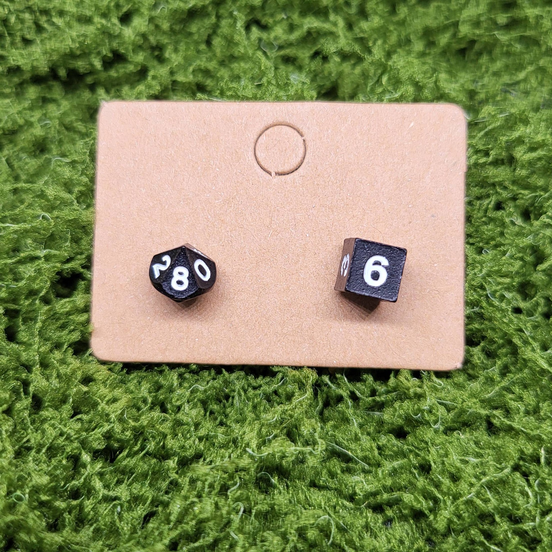 Ručně vyráběné náušnice s kostkami z pryskyřice – originální šperk pro milovníky DnD, RPG her a jedinečných doplňků. Každý pár je unikát!