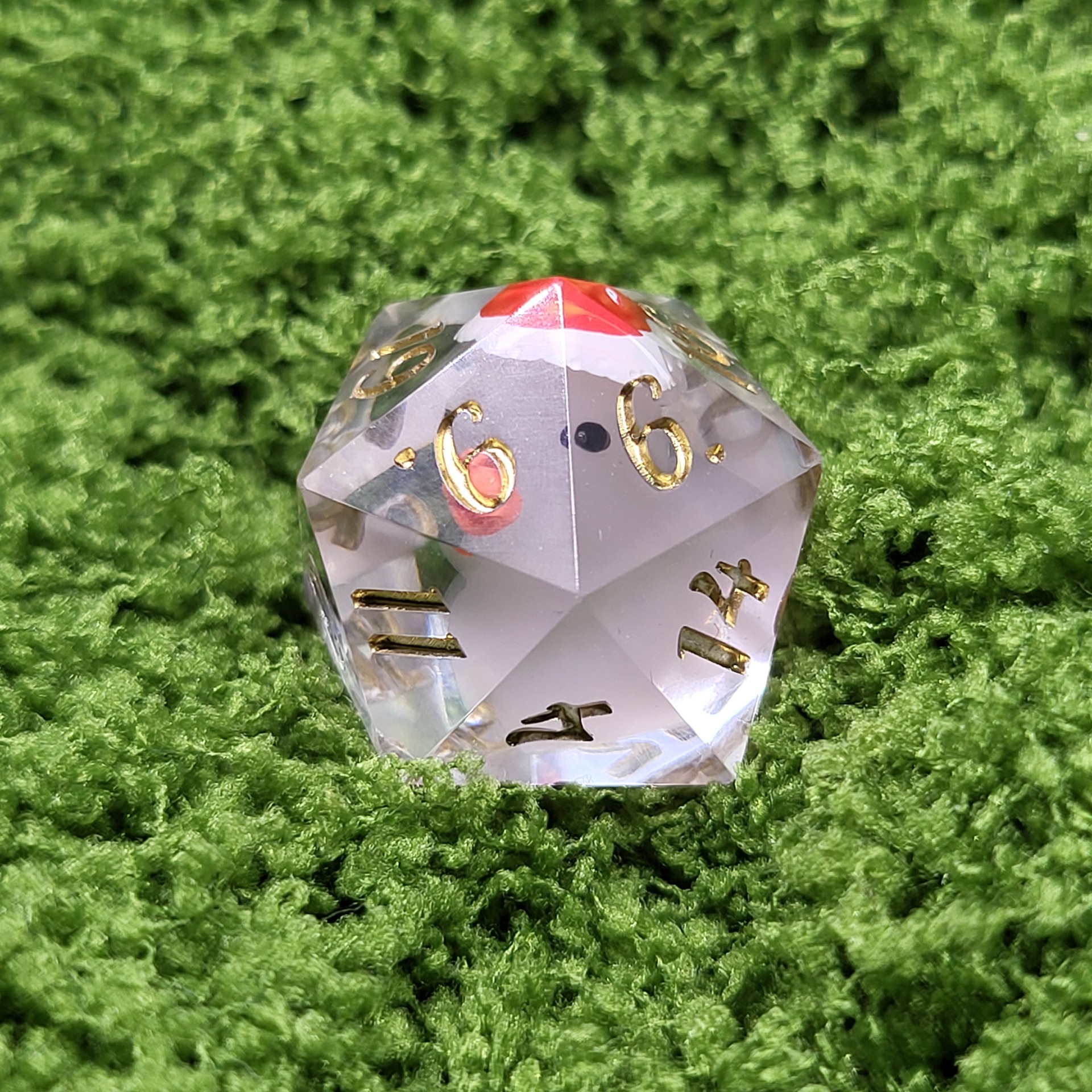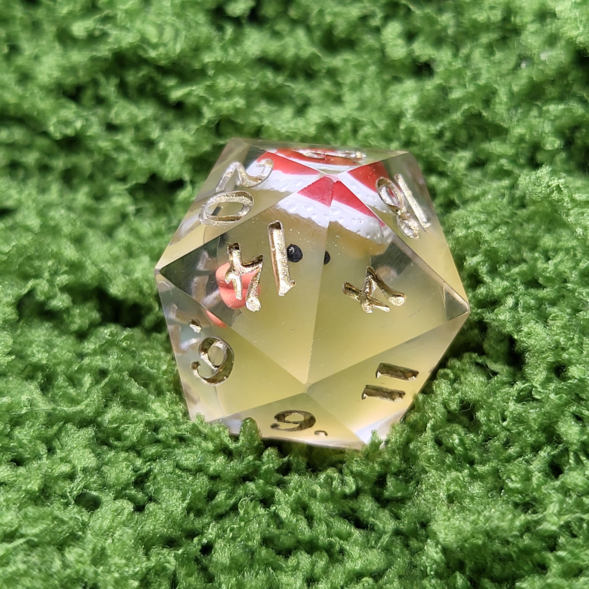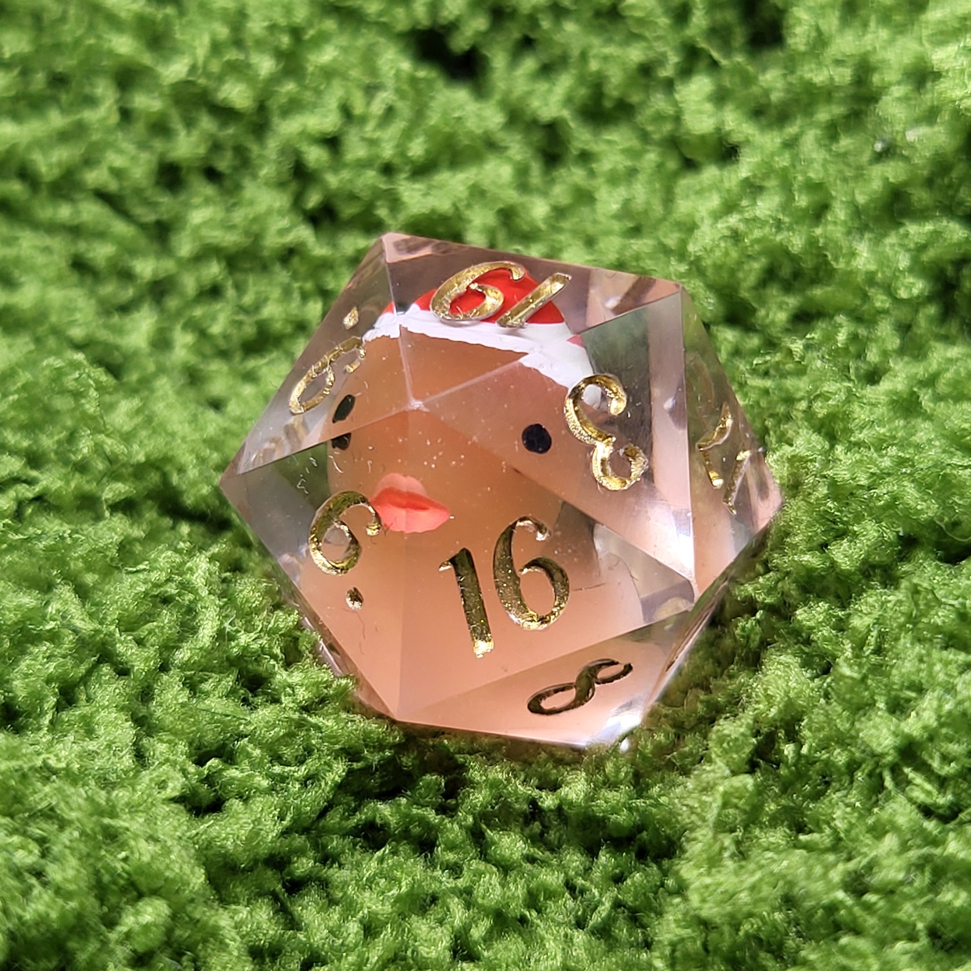 Sháníš jen jednu kostku? Vyber si přesně tu, kterou potřebuješ! Kusové kostky pro RPG, DnD, deskové hry nebo jako stylový doplněk do sbírky. Tato d20 má uvnitř roztomilou kachničku s vánoční čepicí svítící ve tmě.