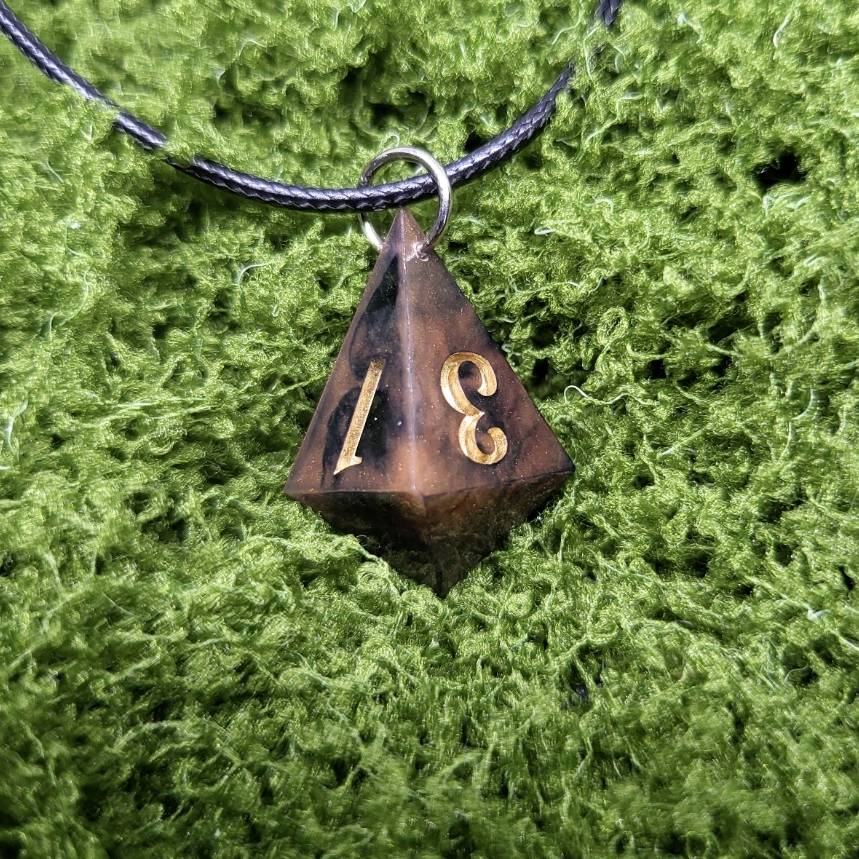 Ručně vyráběný náhrdelník s kostkou z pryskyřice (d4) – originální šperk pro milovníky DnD, RPG her a jedinečných doplňků. Každá kostka je unikát!