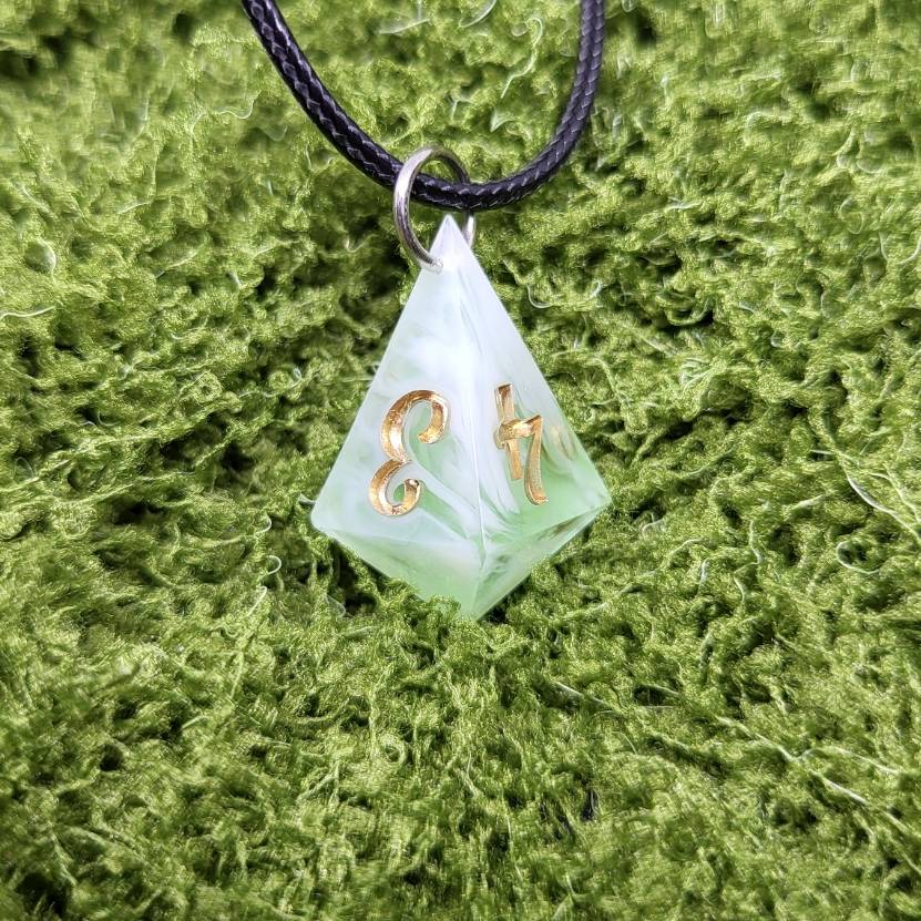 Ručně vyráběný náhrdelník s kostkou z pryskyřice (d4) – originální šperk pro milovníky DnD, RPG her a jedinečných doplňků. Každá kostka je unikát!
