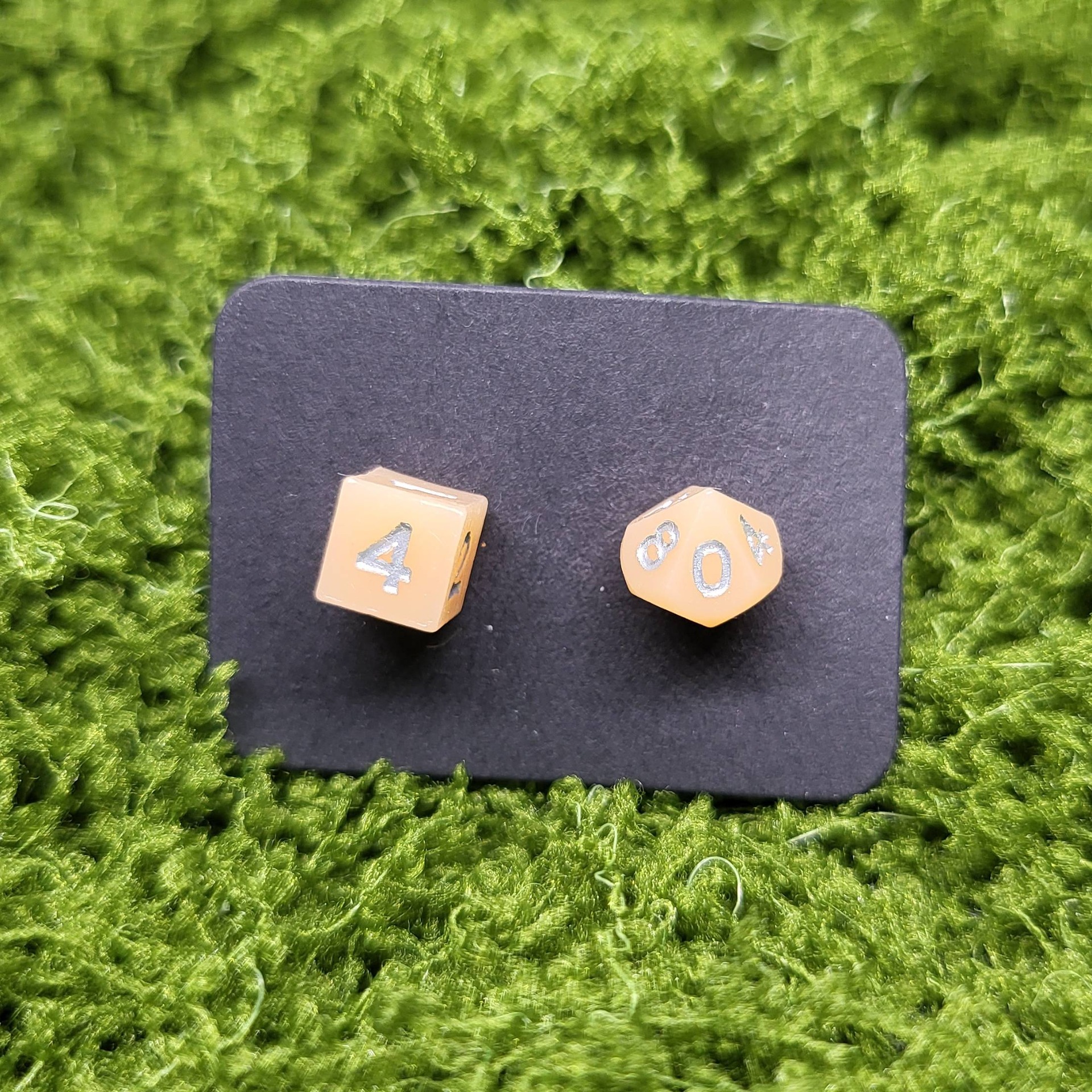Ručně vyráběné náušnice s kostkami z pryskyřice – originální šperk pro milovníky DnD, RPG her a jedinečných doplňků. Každý pár je unikát!