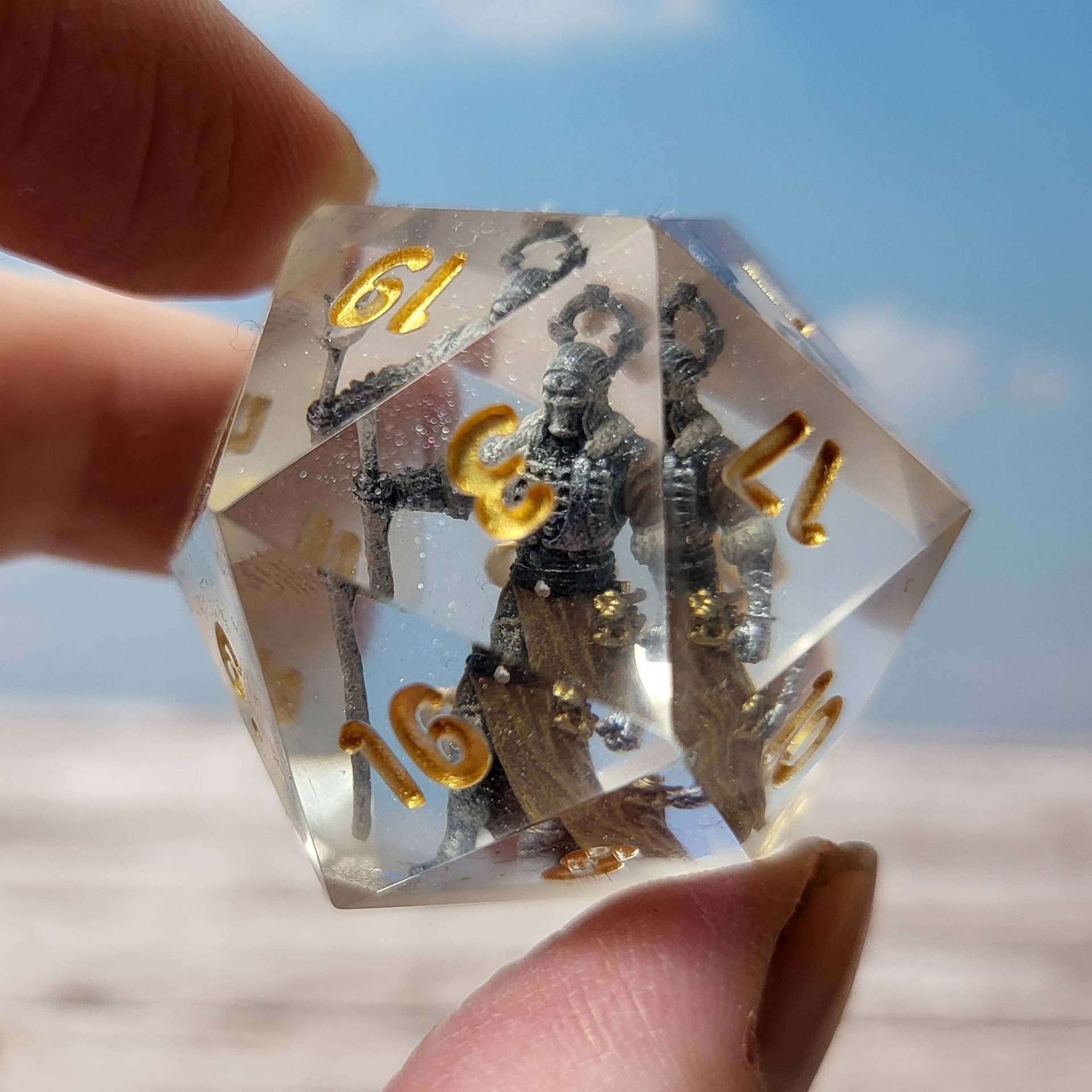 Sháníš jen jednu kostku? Vyber si přesně tu, kterou potřebuješ! Kusové kostky pro RPG, DnD, deskové hry nebo jako stylový doplněk do sbírky. Tato d20 je o něco větší (40mm), aby se do ní vešla velice detailní ručně malovaná figurka Caranthira ze hry Zaklínač 3: Divoký hon.