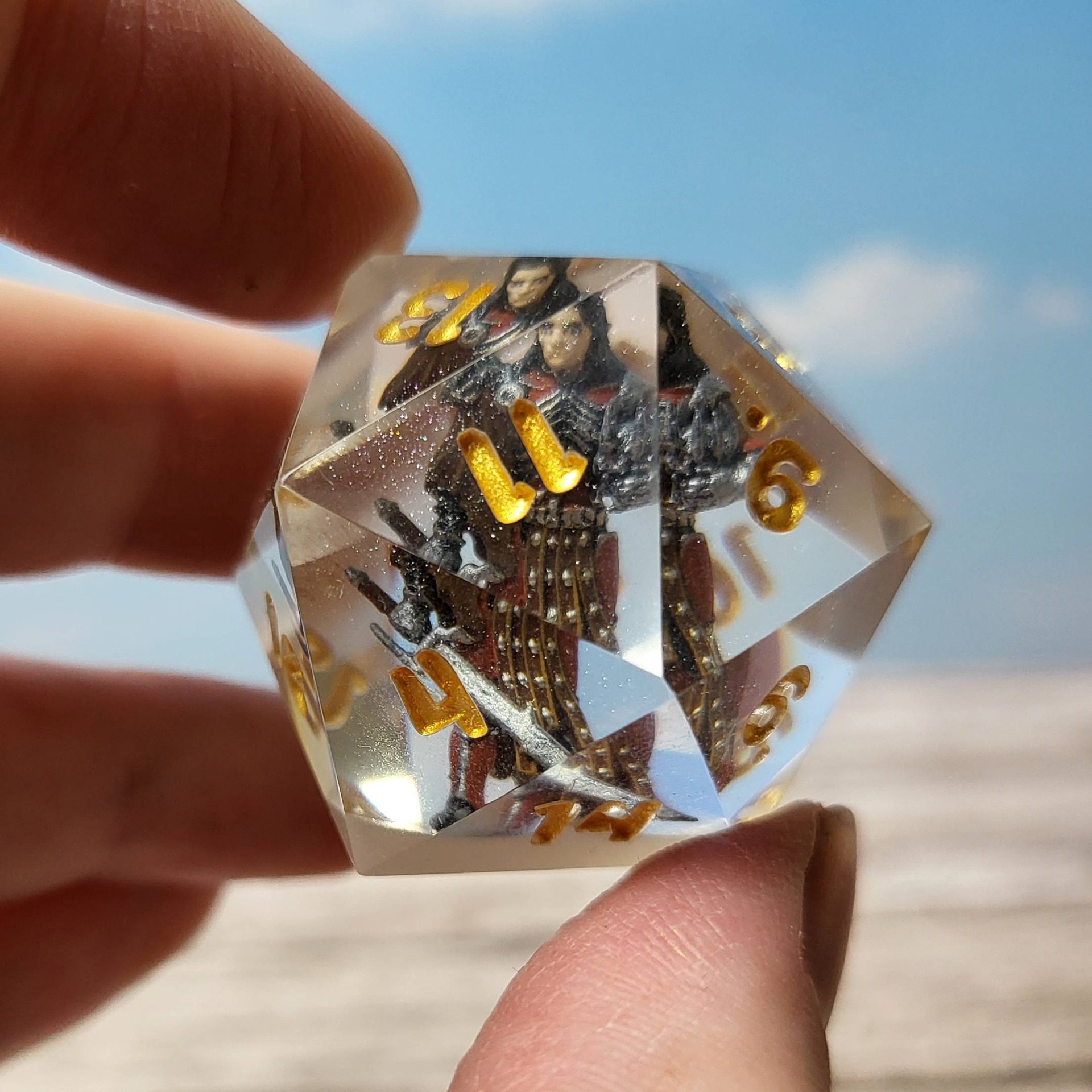 Sháníš jen jednu kostku? Vyber si přesně tu, kterou potřebuješ! Kusové kostky pro RPG, DnD, deskové hry nebo jako stylový doplněk do sbírky. Tato d20 je o něco větší (40mm), aby se do ní vešla velice detailní ručně malovaná figurka velitele Divokého honu - Eredina ze Zaklínače.