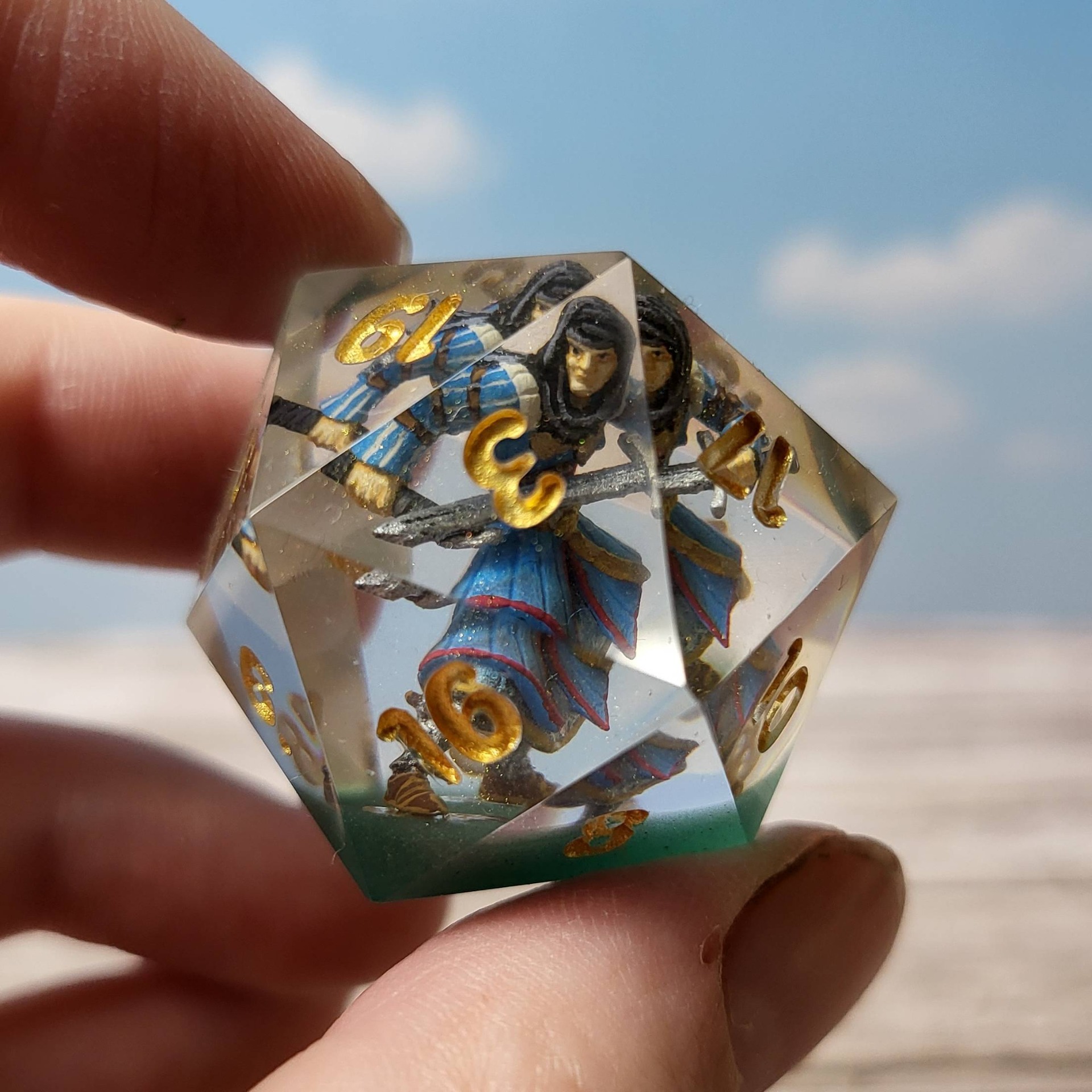 Sháníš jen jednu kostku? Vyber si přesně tu, kterou potřebuješ! Kusové kostky pro RPG, DnD, deskové hry nebo jako stylový doplněk do sbírky. Tato d20 je o něco větší (40mm), aby se do ní vešla velice detailní ručně malovaná figurka Vernona Roche ze Zaklínače.