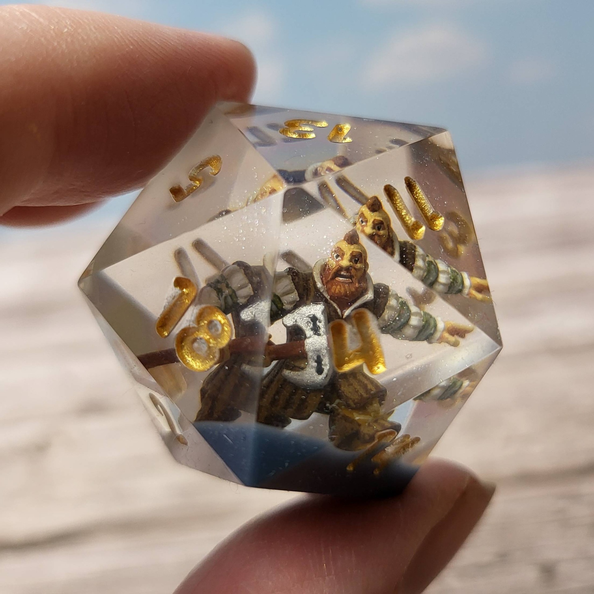 Sháníš jen jednu kostku? Vyber si přesně tu, kterou potřebuješ! Kusové kostky pro RPG, DnD, deskové hry nebo jako stylový doplněk do sbírky. Tato d20 je o něco větší (40mm), aby se do ní vešla velice detailní ručně malovaná figurka trpaslíka Zoltana Chivaye ze Zaklínače.