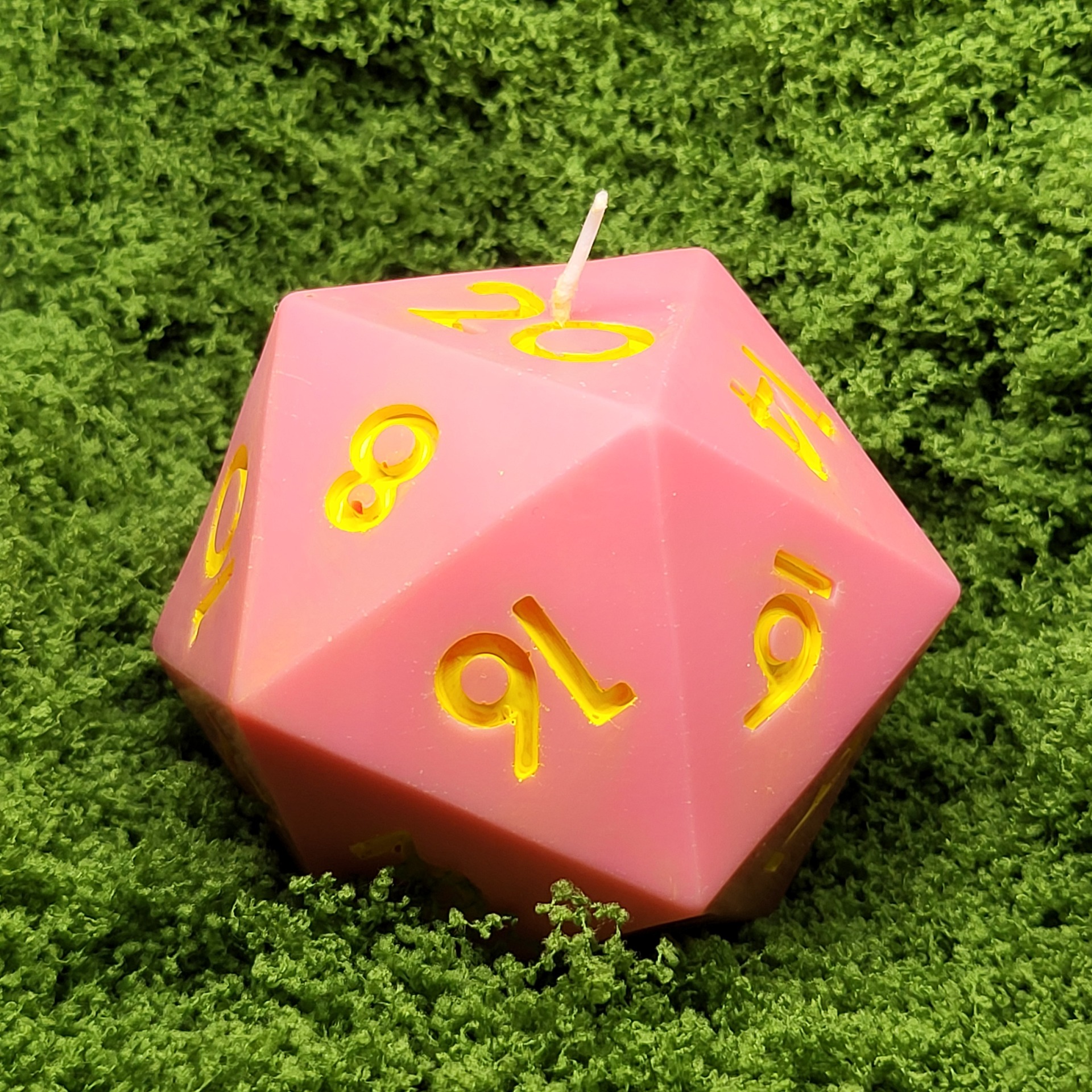 Ručně odlitá svíčka ve tvaru hrací kostky s vůní jablka a skořice, která potěší každého milovníka svíček a her na hrdiny.
