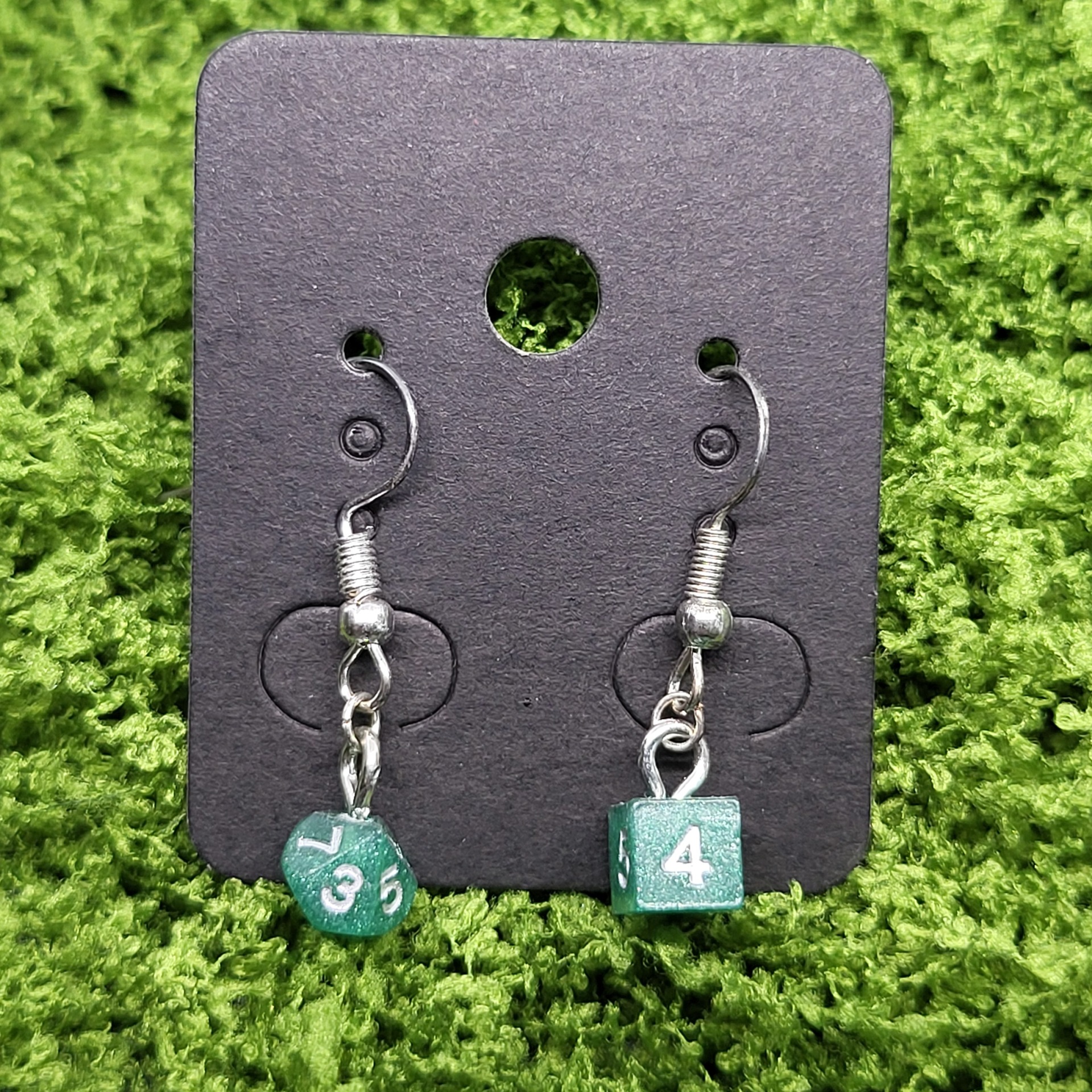 Zeleno stříbrné náušnice (d6 + d10)