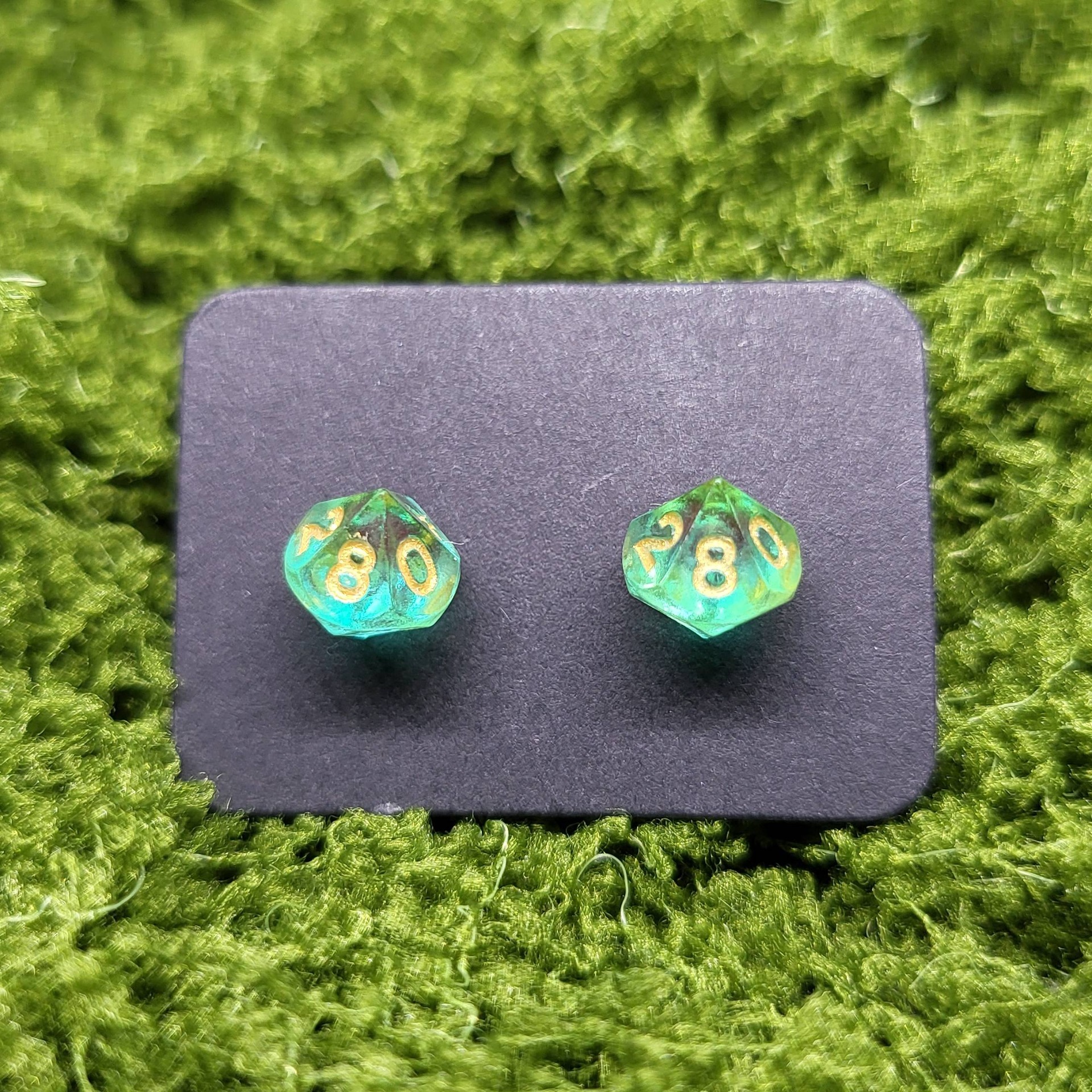 Ručně vyráběné náušnice s kostkami z pryskyřice – originální šperk pro milovníky DnD, RPG her a jedinečných doplňků. Každý pár je unikát!