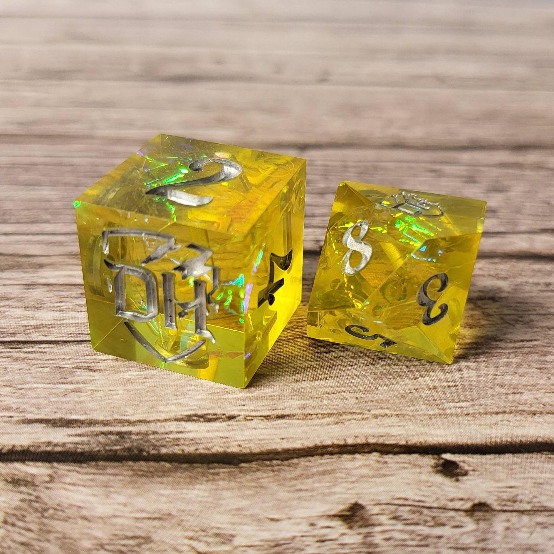 Každá kostka je ručně vyrobená z kvalitní křišťálové pryskyřice s maximální péčí a pozorností k detailům. Vzhledem k povaze ruční výroby však mohou na kostkách být drobné nedokonalosti, které ale nijak neovlivňují jejich funkčnost ani herní zážitek. Tyto malé "chybičky" jsou součástí kouzla ruční práce a dělají každou kostku naprosto jedinečnou.