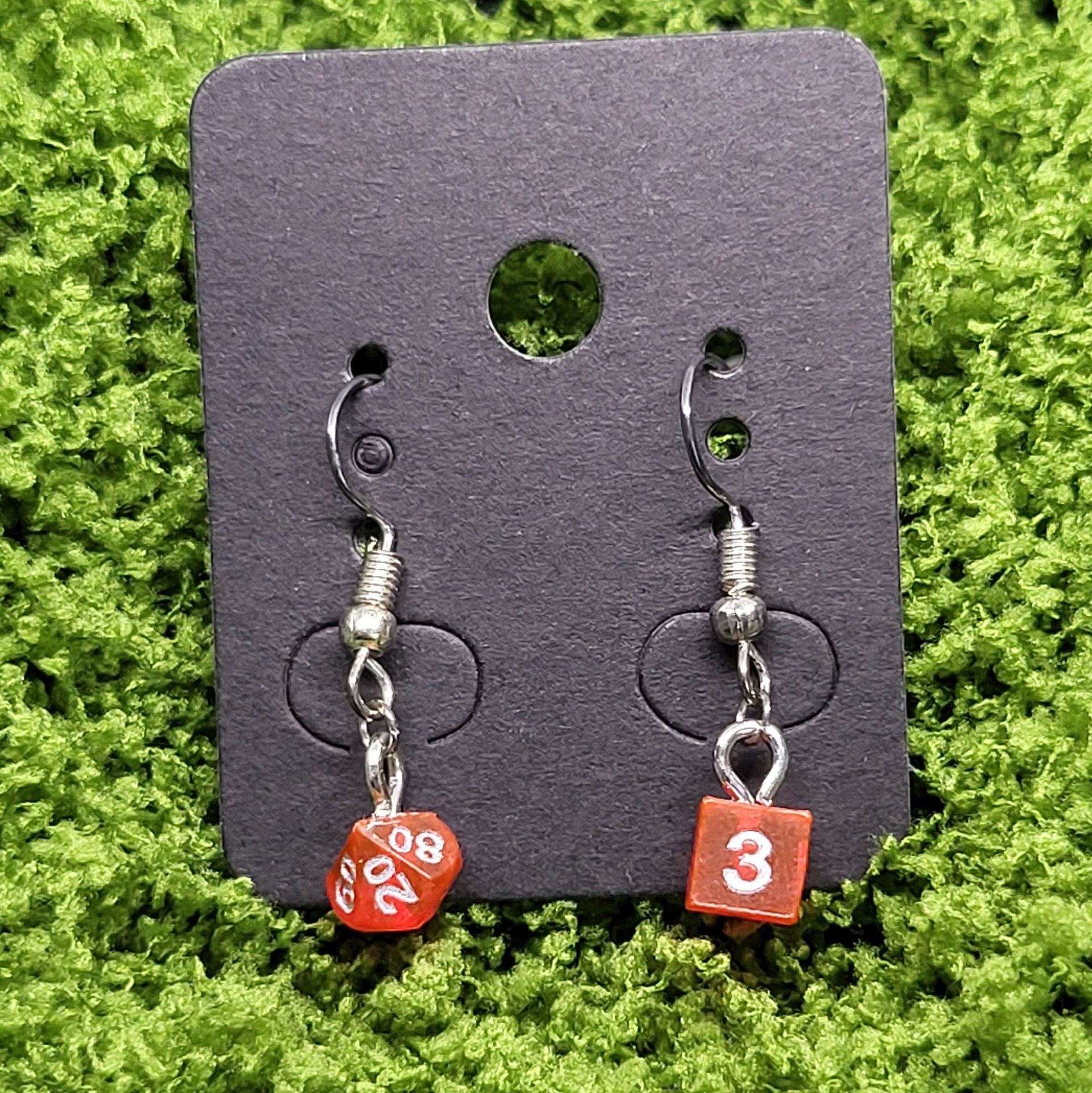 Visací náušnice s mini kostkami z pryskyřice jsou ideálním doplňkem pro každého, kdo miluje RPG, deskovky a fantasy.